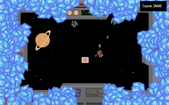On a derelict spaceship, a rusty old maintenance bot must defend itself against hordes of attackers. Each hit makes the bot lose more and more control over the ship's central heating which causes ice crystals to grow on the walls of the ship. How long will you survive before turning into a chunk of ice?